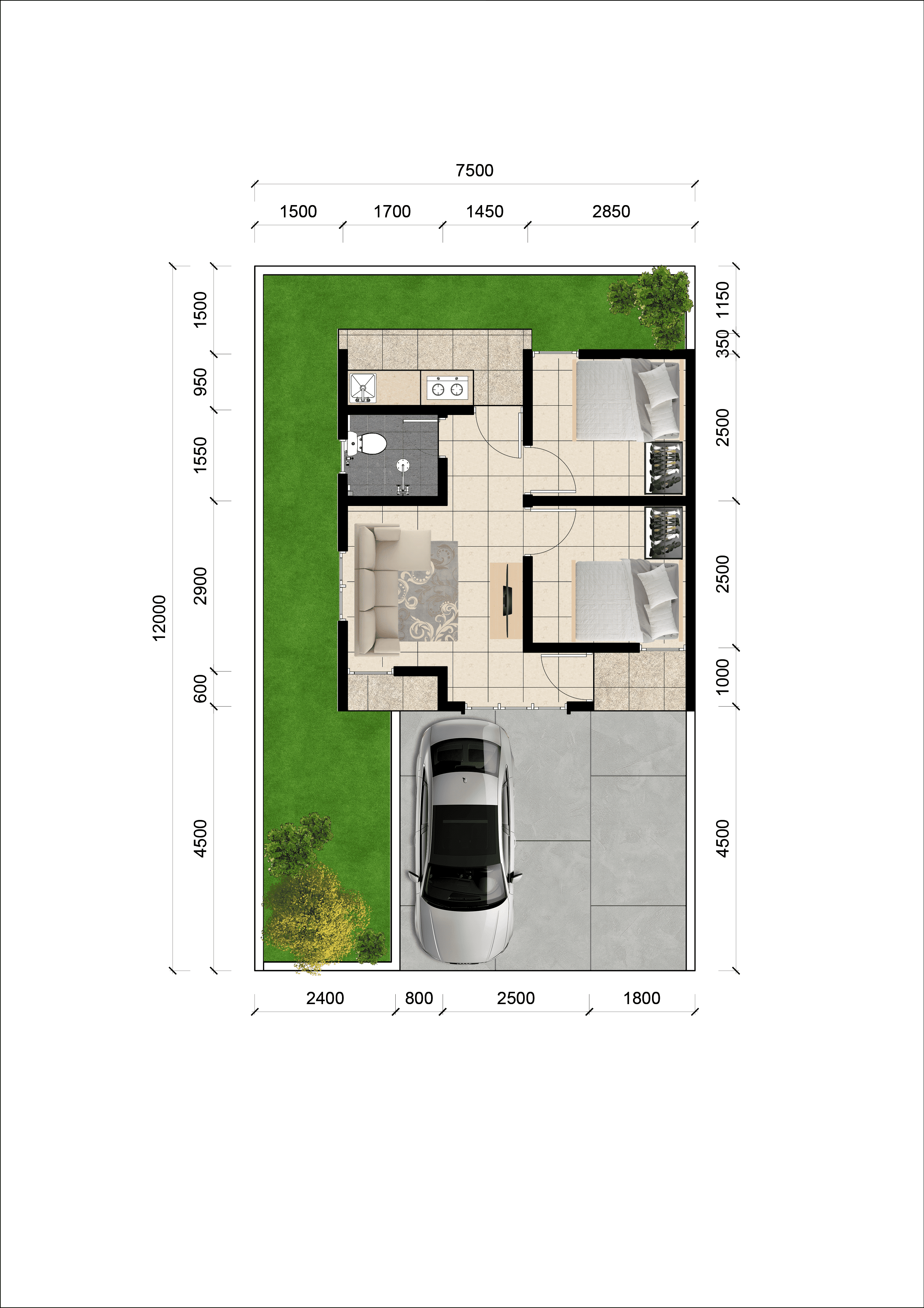 Atap: Rangka Baja Ringan. Plafond: Galvalum, Gypsum. Penutup Atap: Genteng Beton Finish Cat